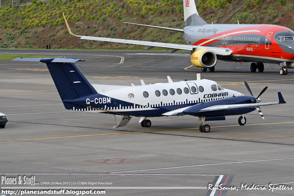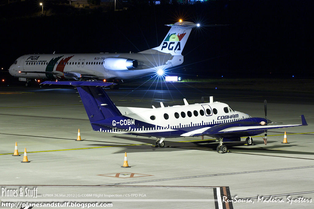 | Cobham Flight Precision Beachcraft 350 Super King Air G-COBM with PGA Fokker 100 CS-TPD taxiing on the back. Check the other pics of this plane on this night HERE |
